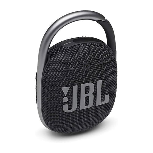 - The JBL Clip 4 is a compact, lightweight speaker conveniently clipped to your bag or belt loop.