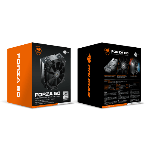CPU tower cooler for entry-level CPU, Forza 50 with its uniquely designed front cover, paired with COUGAR MHP120 high performance fan, provides users with perfect heat dissipation. Forza 50 is absolutely suitable for default setting users.