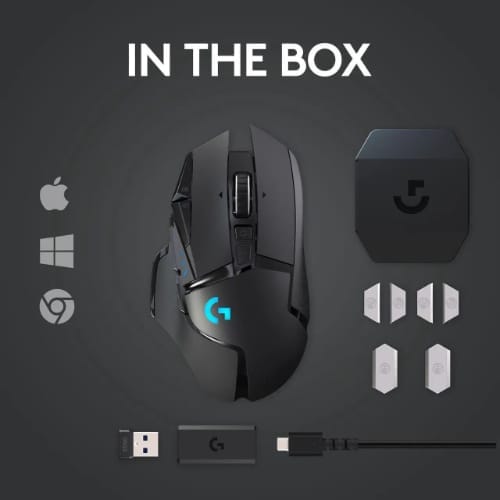 Logitech G502 Lightspeed Wireless Gaming Mouse with Hero 25K Sensor PowerPlay Compatible Tunable Weights and Lightsync RGB – Black