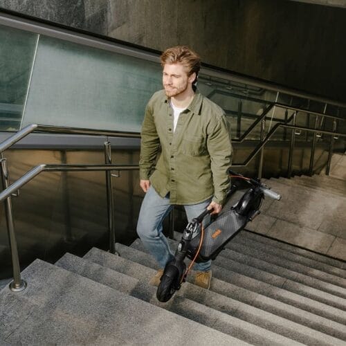 - 10-inch tubeless self-sealing tyres with jelly layer (no maintenance)